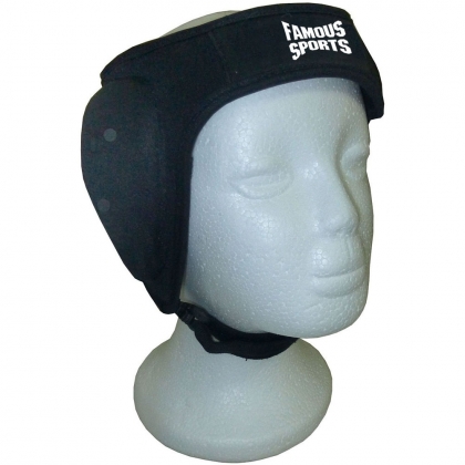Made of 100% Polyester with Eva Molded Foam with Plastic Cup on Ears with 3-Holes on Each. Adjustable Velcro Closer. Softshell Strap with Velcro Under Chin pass through Plastic Molded D-Ring.