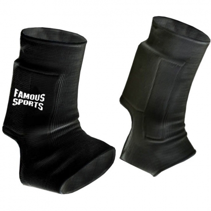 Made of 100% Polyester Elastic Circular Knitting with Eva Foam Padding on both Ankle sides, fully overlock with Elastic inside. Washing Instruction Label with Size inside.