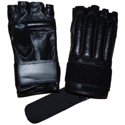 Made of Cowhide Leather all over with Latex Molded foam Padding, 2" wide Leather Strap with Velcro Closer, Wing Thumb.;